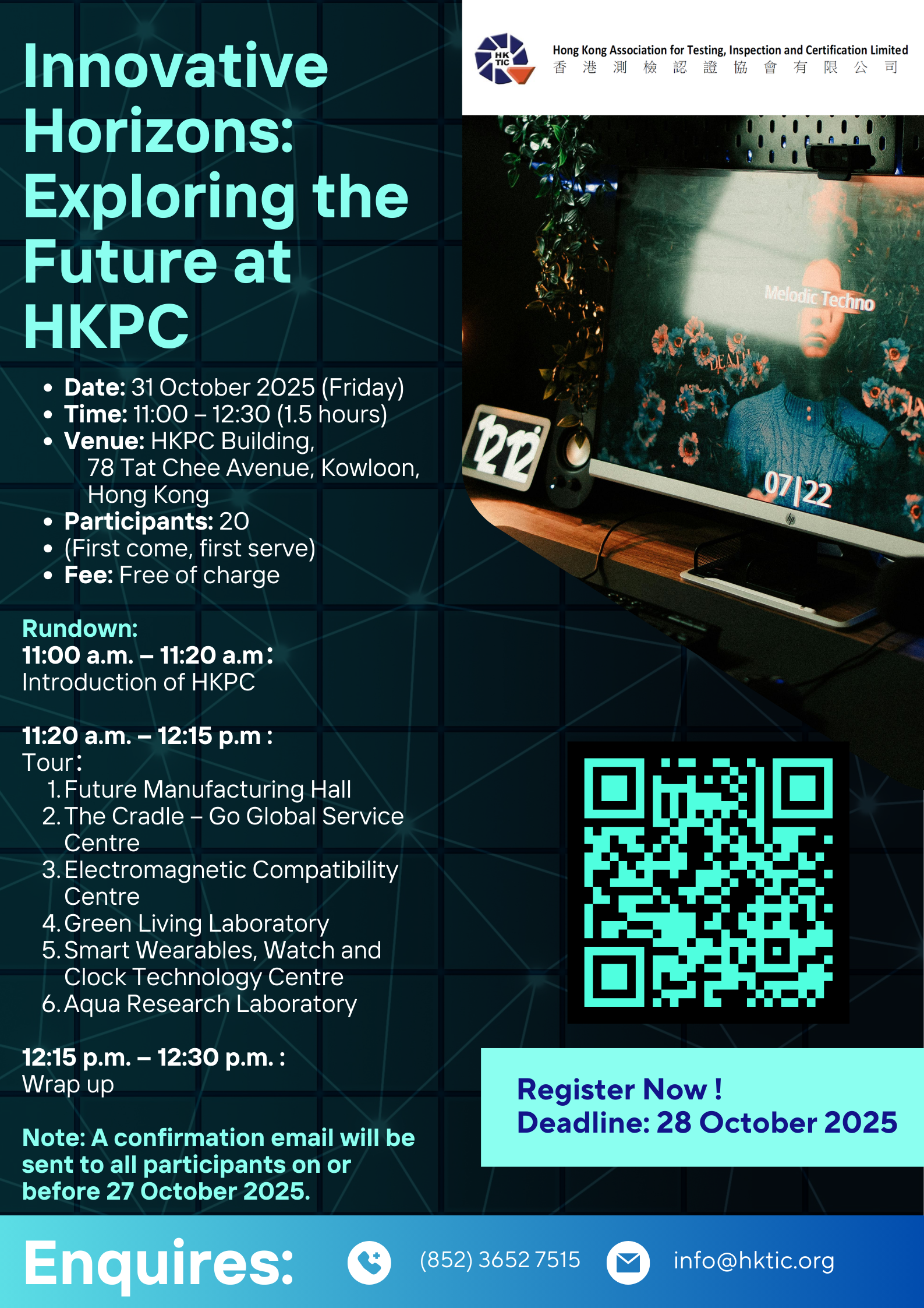 We are pleased to extend an invitation to you for an upcoming event, "Innovative Horizons: Exploring the Future at HKPC." This visit is organized by the Hong Kong Productivity Council (HKPC) and is supported by HKTIC. It aims to provide a comprehensive overview of the facilities and innovations at HKPC, fostering engagement and interest among participants.